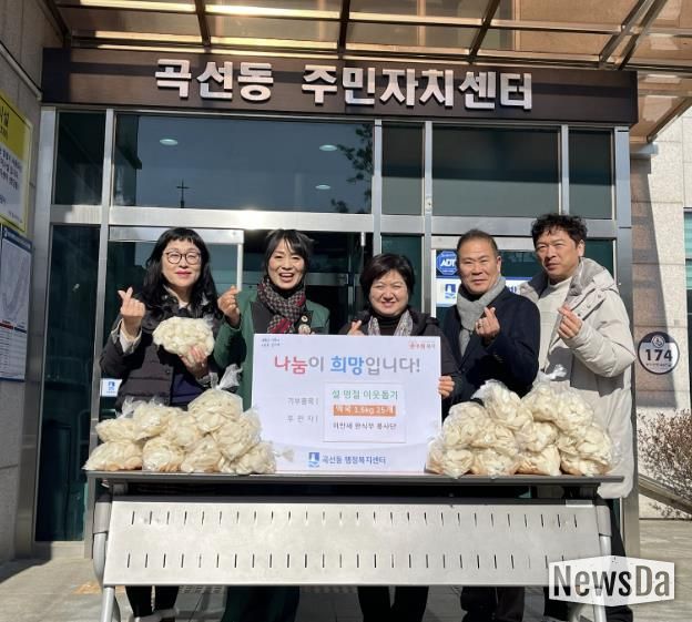 뉴스다 최광묵 기자 | 이만세 한식부 봉사회는 지난 9일, 설 명절을 맞아 곡선동 내 저소득 취약계층을 위해 떡국 떡(1.5kg) 25개를 기부했다.