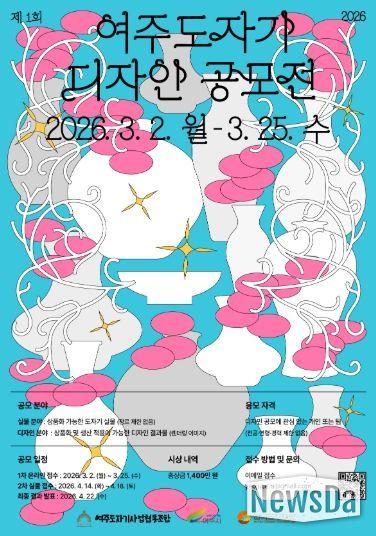 뉴스다 최광묵 기자 | 대한민국 대표 도자 생산지 여주시가 도자산업 전반을 조망하고, 도자 디자인의 창의적 확장을 위해 ‘제1회 여주도자기 디자인 공모전’을 개최한다. 이번 공모전은 혁신적인 도자 디자인을 발굴해 문화관광 콘텐츠로 확장하는 데 의미가 있으며, 수상작은 오는 5월 1일부터 10일까지 열리는 제38회 여주도자기축제 기간에 전시할 예정이다.
