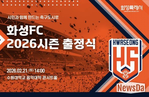 뉴스다 류대현 기자 | 화성FC가 오는 2월 21일 오후 2시, 수원대학교 음악대학 콘서트홀에서 ‘2026 화성FC 출정식’을 개최하고 2026시즌의 본격적인 출발을 알린다.