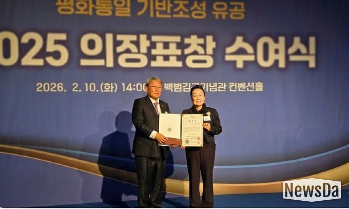 뉴스다 최광묵 기자 | 정임행 민주평화통일자문회의 강남구협의회 차석(㈜파모소 회장)이 2026년 2월 10일 오후 2시 서울 용산구 백범김구기념관 컨벤션홀에서 개최된 민주평화통일자문회의 2025 의장표창 수여식(서울지역)에서 민주평화통일자문회의 의장 대통령 표창을 수상했다.