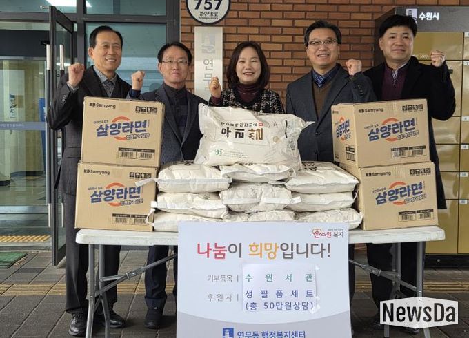 뉴스다 최광묵 기자 | 수원시 장안구 연무동 행정복지센터는 11일, 민족 고유의 명절 설을 앞두고 수원세관과 한국관세사회 수원지부로부터 지역 내 어려운 이웃을 위한 따뜻한 후원의 손길이 이어졌다고 밝혔다.