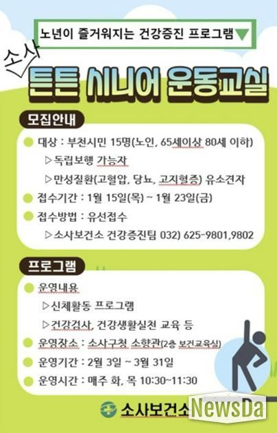 뉴스다 최광묵 기자 | 부천시는 겨울철 활동량이 줄어들기 쉬운 65세 이상 어르신의 기초체력 증진과 건강한 생활 습관 형성을 위해 ‘튼튼 시니어 운동교실’을 운영하고 있다. 현재 1기 프로그램이 3월 31일까지 매주 화요일과 목요일, 소사어울마당 소향관에서 진행 중이다.