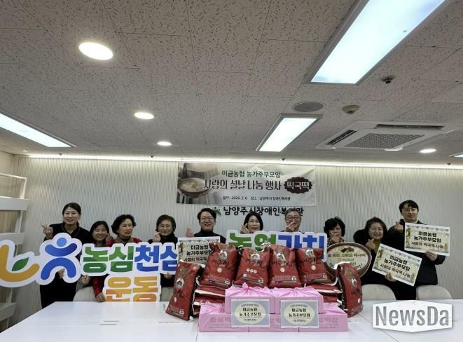 뉴스다 최광묵 기자 | 남양주시는 지난 6일 남양주시장애인복지관과 성인주간보호센터에서 미금농협, 미금농협 농가주부모임이 설 명절을 맞아 ‘사랑의 떡국떡·쌀 전달식’을 진행했다고 12일 밝혔다.