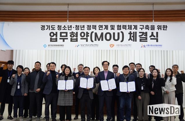 뉴스다 최광묵 기자 | 수원시청소년청년재단은 2월 12일, 경기도미래세대재단, 성남시청소년청년재단, 시흥시청소년청년재단과 함께 ‘경기도 청년 정책 연계 및 협력체계 구축을 위한 업무협약’을 체결했다.