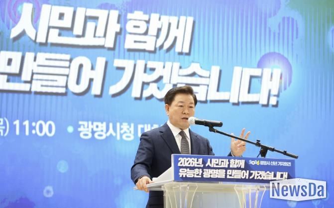 박 시장은 12일 오전 시청 대회의실에서 신년 기자회견을 열고 “지금의 광명은 행정이 주도하는 도시가 아니라 유능한 시민이 스스로 선택하고 참여하며 만들어 온 도시”라며 “2026년은 시민주권, 평생학습, 탄소중립, 자원순환, 사회연대경제, 정원도시, 기본사회 등 광명의 핵심 가치들을 유능한 시민과 함께 완성의 단계로 끌어올리는 해가 될 것”이라고 선언했다.
