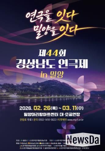 뉴스다 최광묵 기자 | 밀양시는 경남 연극인들의 최대 축제이자 경연대회인 ‘제44회 경상남도 연극제’가 오는 2월 26일부터 3월 11일까지 14일간 밀양아리랑아트센터에서 개최된다고 밝혔다.