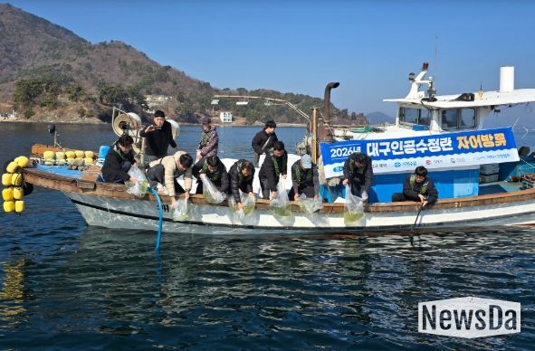 뉴스다 최광묵 기자 | 경상남도는 대구 자원 회복과 어업인 소득 증대를 위해 거제시 사등면 가조도 해역에서 대구 자어 1천만 마리를 방류했다고 밝혔다.