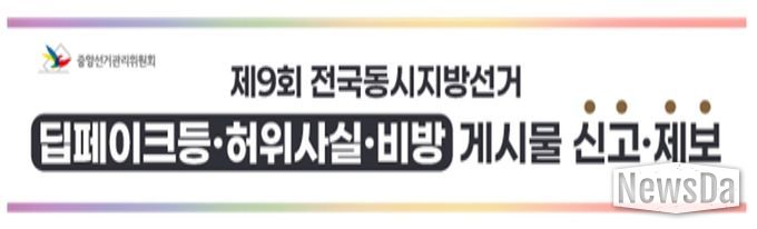 뉴스다 최광묵 기자 | 중앙선거관리위원회는 6월 3일 실시하는 제9회 지방선거를 앞두고 유권자 중심의 깨끗한 사이버 선거문화 조성을 위해 2월 3일부터 ‘사이버선거문화 자정캠페인’을 추진 중이라고 밝혔다.