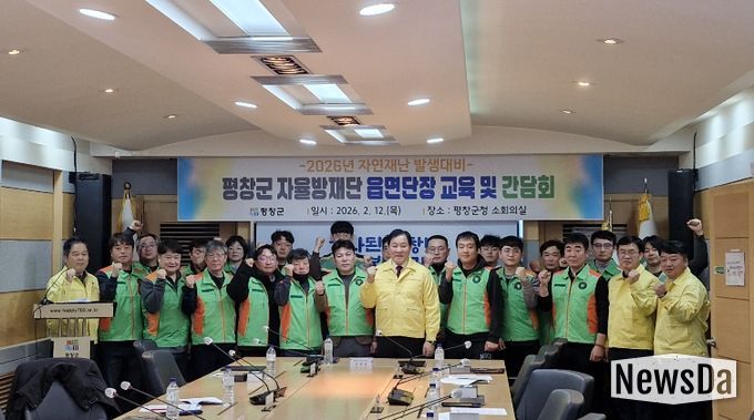 뉴스다 최광묵 기자 | 평창군은 지난 12일 군청 소회의실에서 권혁영 도시안전국장을 비롯한 읍면 자율방재단 대표 등 20여 명이 참석한 가운데 ‘2026년 읍면 자율방재단장 교육 및 간담회’를 개최했다.