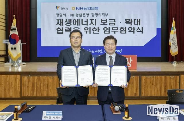 시는 13일 시청 대회의실에서 NH농협은행 광명시지부와 ‘재생에너지 보급·확대 및 사회공헌 연계 업무협약’을 체결했다.