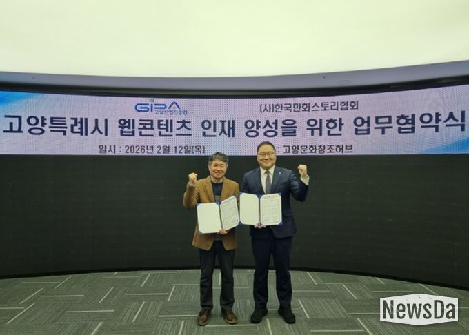 뉴스다 최광묵 기자 | 고양산업진흥원이 지난 12일 고양문화창조허브에서 한국만화스토리협회와 웹툰·웹소설 분야 전문 인재 양성을 위한 업무협약을 체결했다.