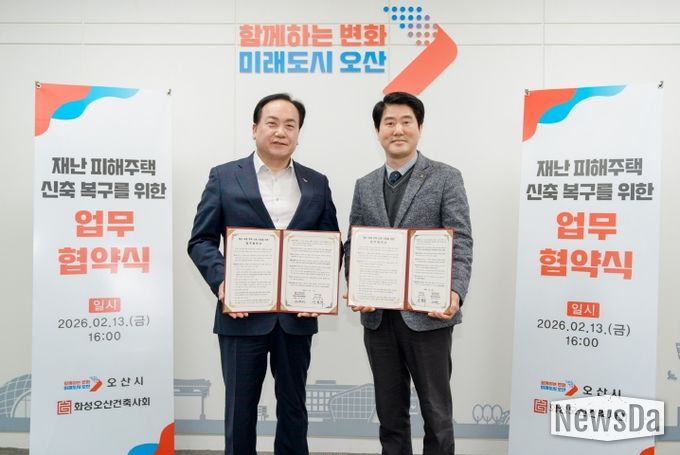 이권재 오산시장은 “재난 피해 주민의 조속한 일상 회복을 위해 주거 안정이 무엇보다 중요하다”며 “이번 협약을 통해 피해주택 복구가 원활히 이뤄질 수 있도록 행정적 지원에 힘쓰겠다”고 말했다.