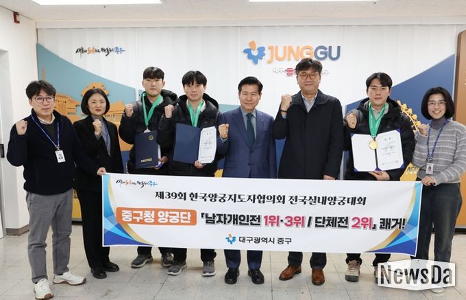 뉴스다 류대현 기자 | 대구 중구청 양궁팀은 지난 2일부터 5일까지 경기도 화성시 장안대학교 체육관에서 열린 ‘제39회 한국양궁지도자협회 전국실내양궁대회’에 참가해 우수한 성적을 거뒀다.