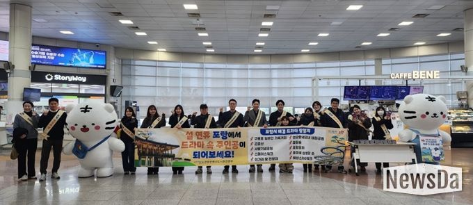 뉴스다 최광묵 기자 | 포항시는 지난 14일 설 명절을 맞아 귀성객이 집중되는 KTX 포항역에서 ‘드라마 속 포항, 축제의 도시 포항’을 주제로 주요 관광지 홍보 캠페인을 전개했다.