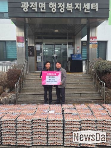 뉴스다 최광묵 기자 | 양주시 광적면은 관내 산란계 농장 ‘에그트리’(대표 박현범)가 최근 지역 이웃을 위해 달걀 300판(환가액 약 180만 원)을 기부했다고 밝혔다.