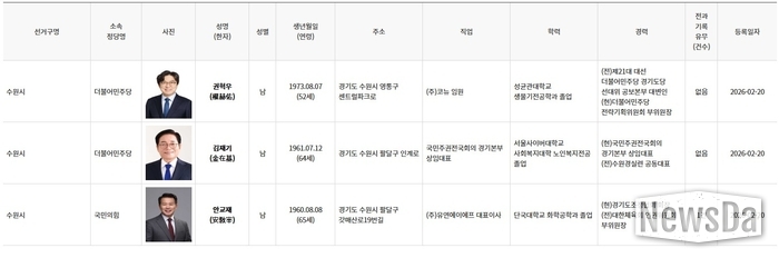 ▲수원시장 예비후보자 (자료출처 = 중앙선거관리위원회)