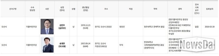 ▲오산시장 예비후보(자료출처 = 중앙선거관리위원회)