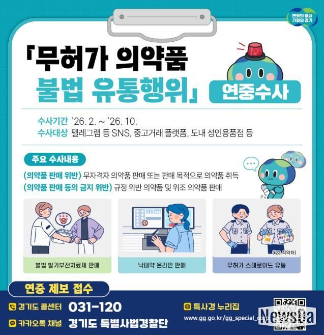 뉴스다 최광묵 기자 | 경기도 특별사법경찰단(특사경)이 비대면 유통망 확산을 틈타 급증하고 있는 무허가 전문의약품 불법 유통 근절을 위한 집중 수사에 나선다.