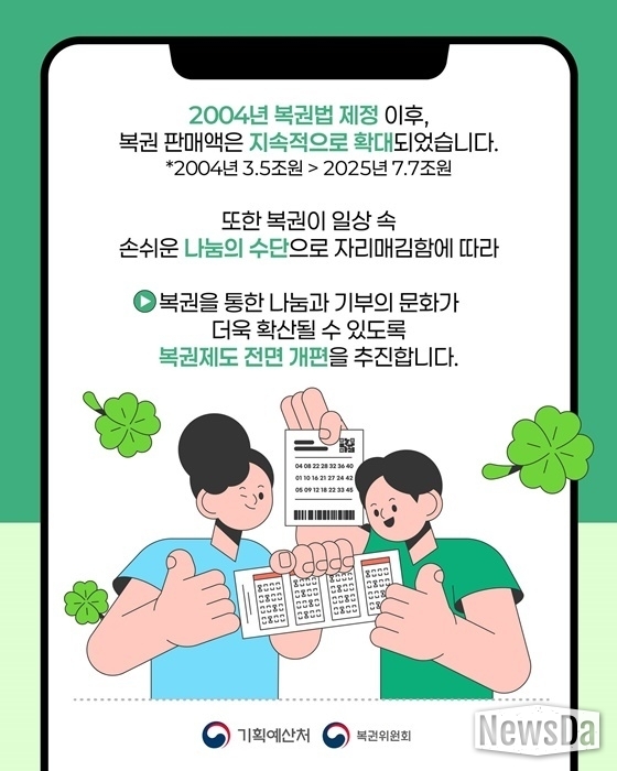→ 복권을 통한 나눔과 기부의 문화가 더욱 확산될 수 있도록 복권제도 전면 개편을 추진합니다.