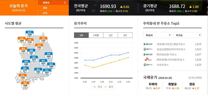 ▲화성시 휘발류 제일 싼 주유소 1619원 자유에너지(주)행운주유소