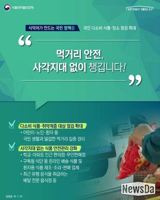 뉴스다 최광묵 기자 | 식약처가 만드는 국민 정책- 국민 다소비 식품·장소 점검 확대