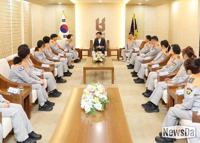 뉴스다 최광묵 기자 | 부천시는 지난 23일 시청 만남실에서 의용소방대원들과 함께 재난현장 대응력 강화를 위한 간담회를 열었다.