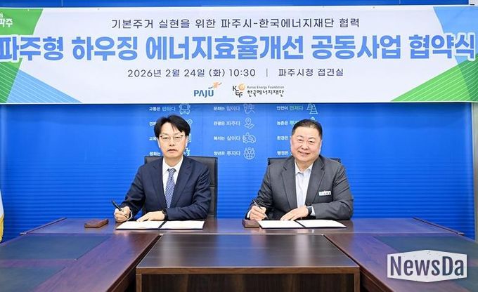 뉴스다 최광묵 기자 | 파주시는 지난 24일 한국에너지재단과 ‘기본주거 실현을 위한 파주형 하우징 에너지효율개선 공동사업’업무협약을 체결했다.