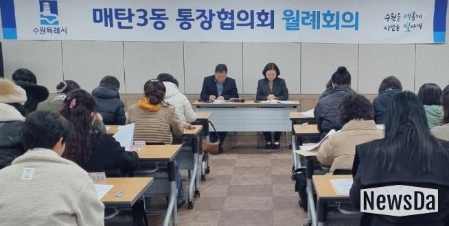 뉴스다 최광묵 기자 | 수원시 영통구 매탄3동은 지난 24일 시정 및 동정 소식 공유를 위한 2월 통장협의회 월례회의를 개최했다.