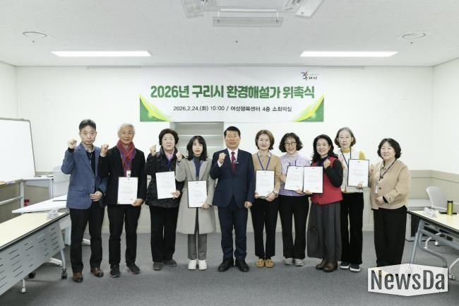 뉴스다 최광묵 기자 | 구리시는 24일 여성행복센터 소회의실에서 ‘2026년 구리시 환경해설가 위촉식’을 개최하고, 지역 환경교육을 이끌어 갈 환경해설가들에게 위촉장을 수여했다.