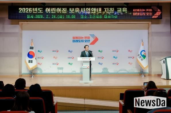 뉴스다 최광묵 기자 | 오산시는 지난 24일 시청 대회의실에서 관내 어린이집 원장 및 보육교사 150명을 대상으로 ‘2026년도 어린이집 보육교직원 보육사업안내 지침 교육’을 실시했다고 밝혔다.