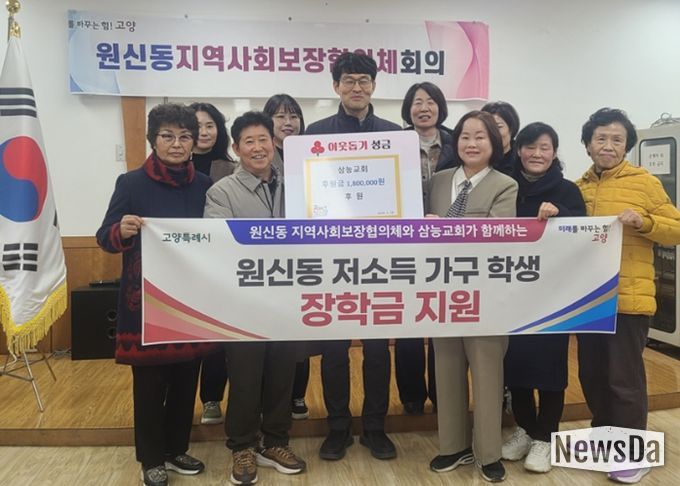 뉴스다 최광묵 기자 | 고양특례시 덕양구 원신동은 지난 24일 삼능교회에서 신학기를 맞아 저소득 학생 지원을 위한 장학금 180만 원을 원신동 행정복지센터에 전달했다고 25일 밝혔다.
