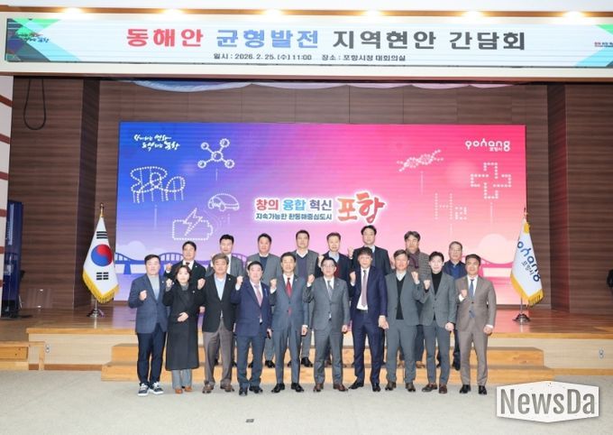 뉴스다 최광묵 기자 | 포항시는 25일 시청 대회의실에서 2027년도 국비 확보 전략과 주요 현안사업을 논의하기 위한 ‘동해안 균형발전 지역현안 간담회’를 가졌다.