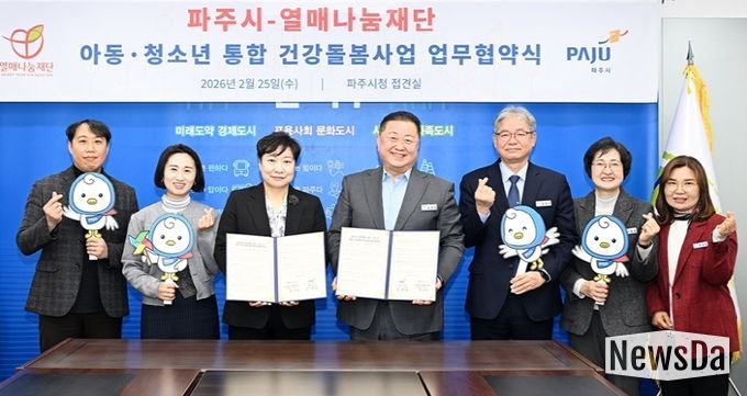 뉴스다 최광묵 기자 | 파주시는 25일 사회복지법인 열매나눔재단과 관내 취약계층 아동·청소년을 위한 통합 건강돌봄지원사업 업무 협약을 맺었다.
