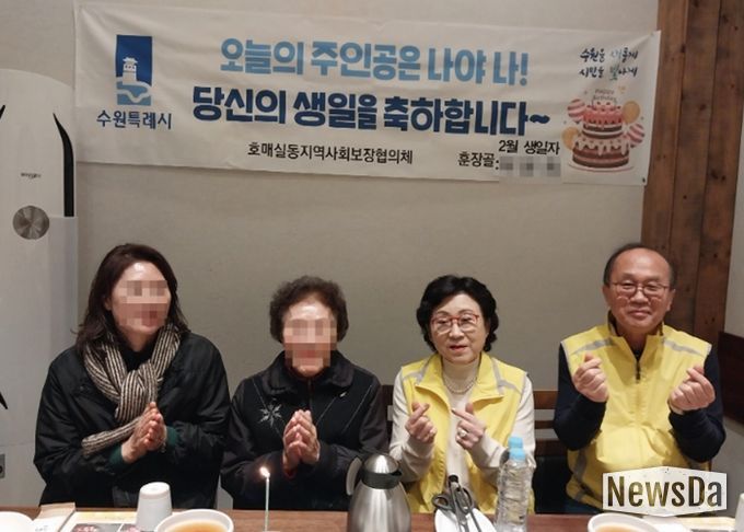 뉴스다 최광묵 기자 | 수원시 권선구 호매실동 지역사회보장협의체는 지난 24일, 관내 홀몸 어르신을 초청해 ‘행복한 생일파티’를 진행했다.