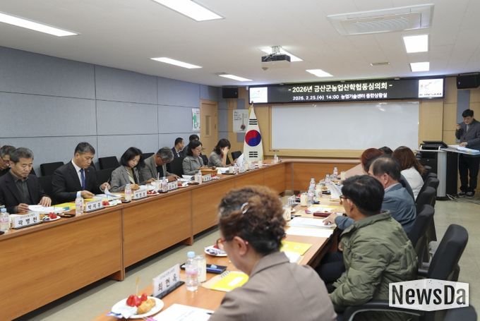 뉴스다 최광묵 기자 | 금산군농업기술센터는 지난 25일 센터 종합상황실에서 2026년 농업산학협동심의회를 개최하고 올해 추진할 농업기술보급 시범사업에 대한 심의를 진행했다.