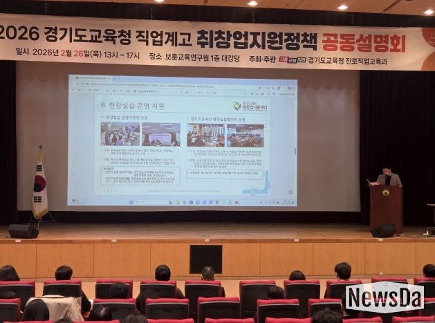 뉴스다 최광묵 기자 | 경기도교육청이 26일 보훈교육연구원에서 도내 직업계고 학생의 맞춤형 진로 성장 지원을 위한 ‘2026 직업계고 취·창업 지원정책 공동설명회’를 개최했다.