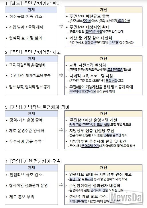 뉴스다 최광묵 기자 | 행정안전부는 국민주권정부를 맞아 재정민주주의를 내실있게 실현하기 위해 ‘주민참여예산제도’를 대폭 확대·고도화한다.