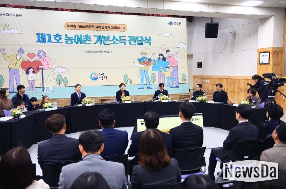 뉴스다 최광묵 기자 | 농림축산식품부는 인구 소멸 위기 농어촌 지역의 주민을 대상으로 2월 26일 농어촌 기본소득을 첫 지급하게 됐다고 밝혔다. 지난 12월부터 농어촌 기본소득 신청을 받았던 시범사업 대상 10개 군은 2월 26일과 27일 양일에 걸쳐 지급 대상 주민에게 15만 원의 기본소득을 지역사랑상품권으로 지급한다. 송미령 장관은 26일 장수군에서 제1호 농어촌 기본소득 수령자에게 지역사랑상품권을 직접 전달했다.