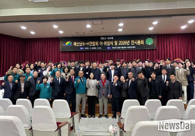 뉴스다 최광묵 기자 | 예산군4-H연합회는 지난 26일 농업기술센터 교육관에서 회원 및 내빈 50여 명이 참석한 가운데 예산군4-H연합회장 이·취임식 및 연시총회를 개최했다고 밝혔다.