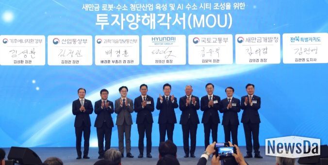 도는 27일 군산 새만금컨벤션센터(GSCO)에서 현대자동차그룹, 정부 5개 부처와 함께 '새만금 로봇·수소 첨단산업 육성 및 수소AI 도시 조성을 위한 투자협약(MOU)'을 체결했다. 이번 협약은 정부 부처, 광역지자체, 민간기업이 단일 투자 건에 공동 서명한 사례이며, 이는 전국적으로 전례가 드물다. 정부가 새만금을 국가 차원의 미래산업 실증 거점으로 공인한 것으로도 해석된다.