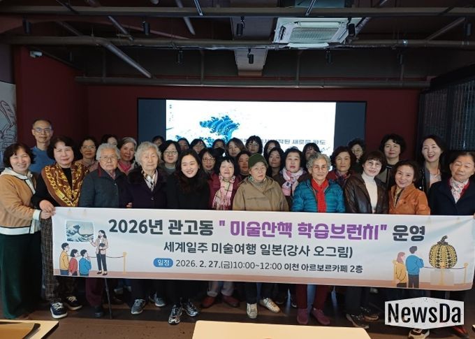 뉴스다 최광묵 기자 | 이천시 관고동 평생학습센터는 ‘관고 미술산책 학습브런치’의 일환으로, 익숙하지만 낯선 나라 일본의 미술을 조명하는 ‘세계일주 미술여행–일본 편’을 지난 27일 운영했다고 밝혔다.