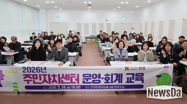 뉴스다 최광묵 기자 | 안성시는 2월 26일 오후 4시 안성맞춤아트홀 4층 대회의실에서 15개 읍·면·동 주민자치 위원(회)장, 간사, 업무 담당 공무원 등 45명을 대상으로 ‘2026년 주민자치센터 운영·회계 교육’을 실시했다.