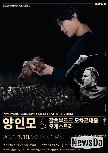 뉴스다 최광묵 기자 | (재)고양문화재단은 2026시즌 기획공연 '2026 아람 클래식 – 양인모 & 잘츠부르크 모차르테움 오케스트라'를 오는 3월 18일 오후 7시 30분 고양아람누리 아람음악당에서 개최한다.