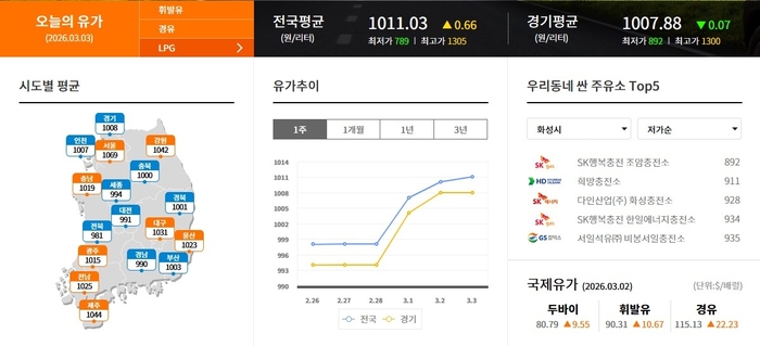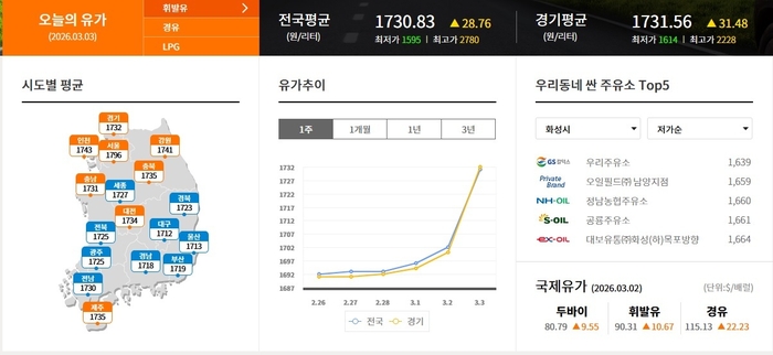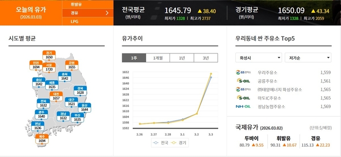 ▲화성시 휘발류 제일 싼 주유소 1639원 우리주유소