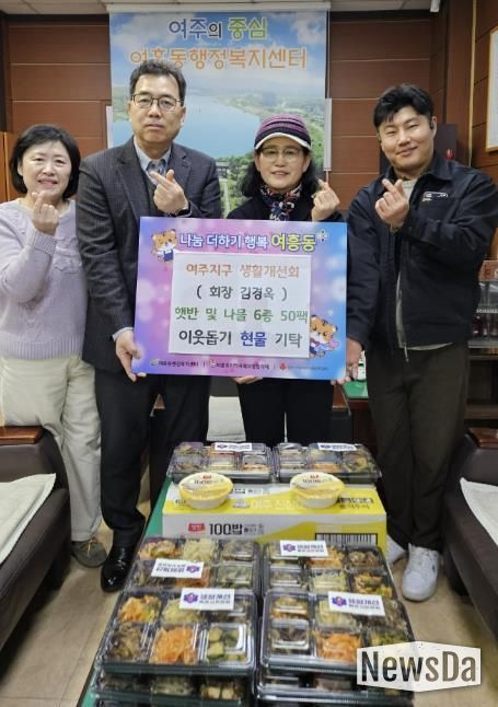 뉴스다 최광묵 기자 | 여주지구 생활개선회는 지난 3일 여흥동 행정복지센터를 방문해 관내 어려운 이웃들을 위한 햇반과 반찬 6종 50팩을 기탁했다.