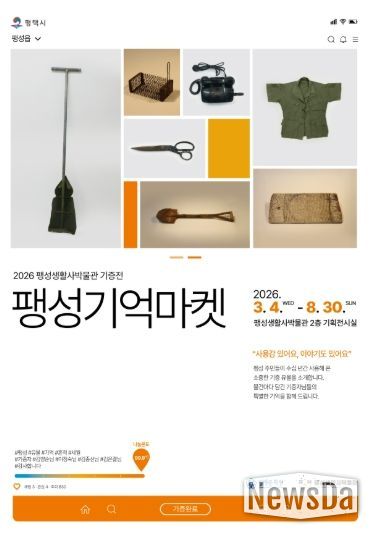 뉴스다 최광묵 기자 | 팽성생활사박물관은 2026년 3월 4일부터 8월 30일까지 팽성생활사박물관 기획전시실에서 2026년 상반기 기증전 '팽성기억마켓 – 사용감 있어요, 이야기도 있어요'를 개최한다.