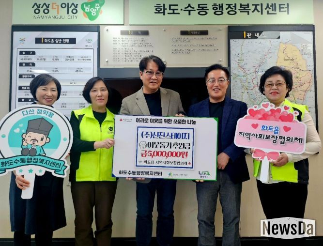 뉴스다 최광묵 기자 | 남양주시는 4일 관내 소재 기업 ㈜신진스테이지가 취약계층 지원을 위한 후원금 500만 원을 화도읍 지역사회보장협의체에 기탁했다고 밝혔다.