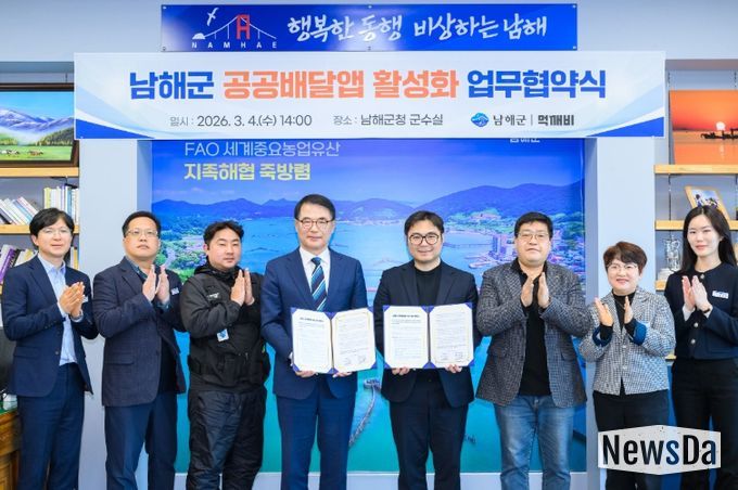 뉴스다 최광묵 기자 | 남해군은 4일 공공배달앱 운영사인 먹깨비와 ‘공공배달앱 활성화를 위한 업무협약’을 체결했다.