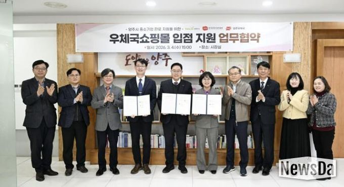뉴스다 최광묵 기자 | 양주시가 지난 4일 한국우편사업진흥원, 양주우체국과 함께 관내 중소기업의 온라인 유통망 확대를 위한 ‘우체국 입점 지원 업무협약’을 체결했다.