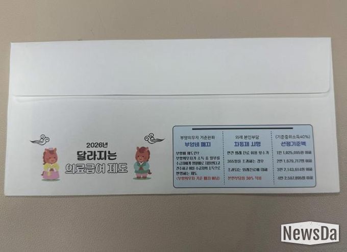 뉴스다 최광묵 기자 | 의정부시는 2026년부터 달라지는 의료급여 제도의 핵심 내용을 시민들에게 신속하게 알리기 위해 주요 변경 사항을 담은 맞춤형 우편봉투를 제작했다고 5일 밝혔다.